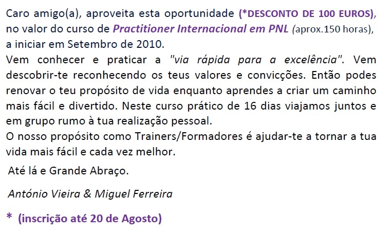 PNL, PRACTITIONER (curso com certificação internacional) 1º módulo 18 /19 SETEMBRO EM FÁTIMA no IPPNL